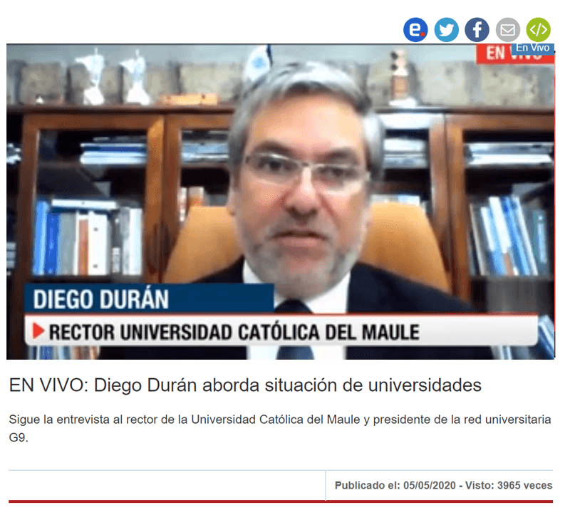 Como un elemento tremendamente nocivo y negativo, que se agrega a la ya compleja situación que viven las instituciones de educación superior públicas del G9, calificó el Presidente de la Red de Universidades Públicas no Estatales y rector de la Universidad Católica del Maule (UCM), Dr. Diego Durán Jara, la iniciativa parlamentaria que busca congelar el pago de aranceles con el objetivo de colaborar en disminuir el impacto producto de la pandemia por COVID19.