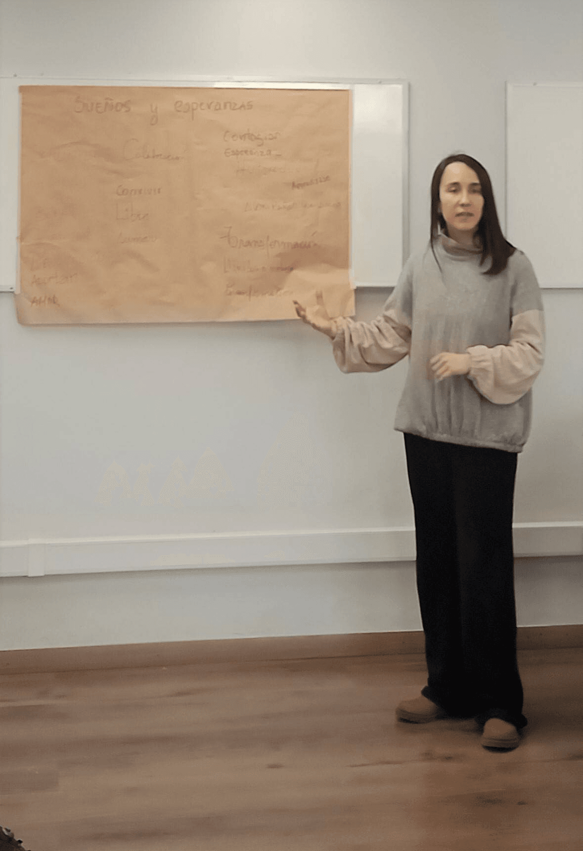 Finalmente, en el espacio titulado "Sueños y Esperanzas", se invitó a los asistentes a proyectar sus expectativas futuras, respondiendo a preguntas como "¿Cómo visualizan sus aportes en adelante? ¿Cuáles son sus metas o sueños?". Estas reflexiones se plasmaron en un papelógrafo, resumiendo cada idea en una palabra o frase.