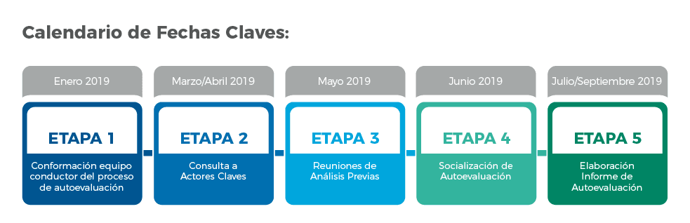 Por ello es que su planificación contempla diferentes etapas: la conformación del equipo conductor del proceso de autoevaluación; el levantamiento de información y consulta a actores claves; el análisis preliminar de la autoevaluación; la socialización de los resultados; y la confección del informe de autoevaluación.
