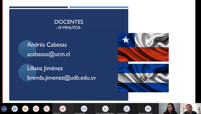 Es por ello que los jóvenes han aprovechado para conocer el país centroamericano a través del contacto online. El estudiante de Tecnología Médica UCM, Cristian Castro, comentó que “esta actividad nos permitió, junto a mi grupo, conocer un poco más de su labor y desarrollo como profesional, acompañado de conocimientos nuevos acerca de su país, El Salvador, a la vez que nosotros compartíamos datos sobre nuestro país, lo que fue bastante didáctico y entretenido, además, nuestros compañeros de El Salvador fueron bastantes cooperativos a la conversación, permitiendo realizar una actividad bastante fluida y de gran intercambio de conocimientos”, compartió.