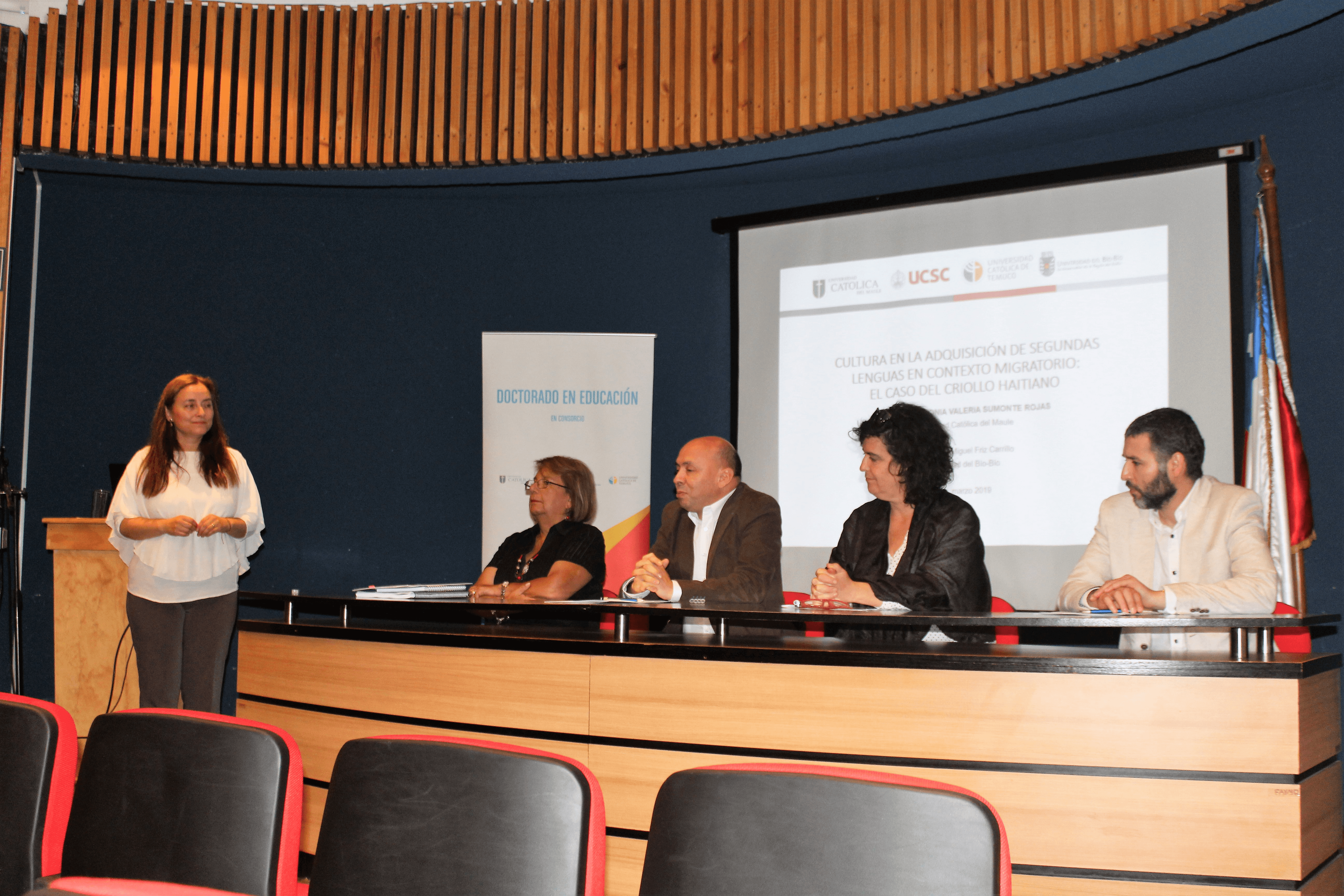 La candidata a doctora Valeria Sumonte Rojas, del Doctorado en Educación en Consorcio, programa acreditado por tres años, fue aprobada con distinción sobresaliente, nota 7.0, con su tesis doctoral .
