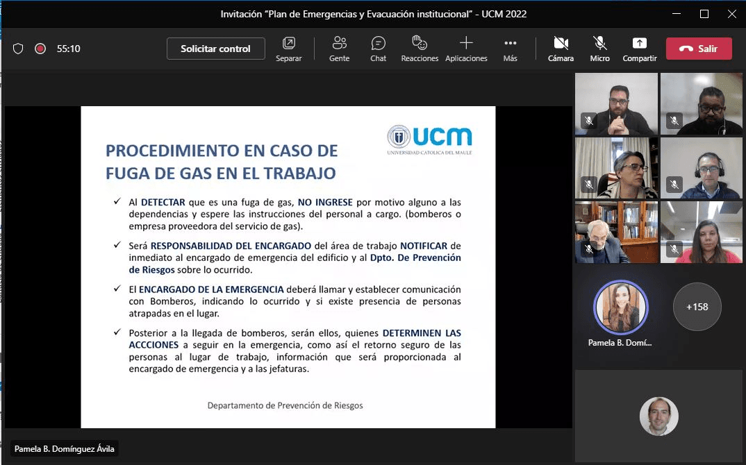 Ante la necesidad de que toda la comunidad universitaria conozca el Plan de Emergencias y Evacuación que elaboró el Departamento de Prevención de Riesgos, perteneciente a la Dirección de Gestión de Personas, se organizó una serie de reuniones por Teams, en las que se convocó a toda la planta profesional administrativa y académica.