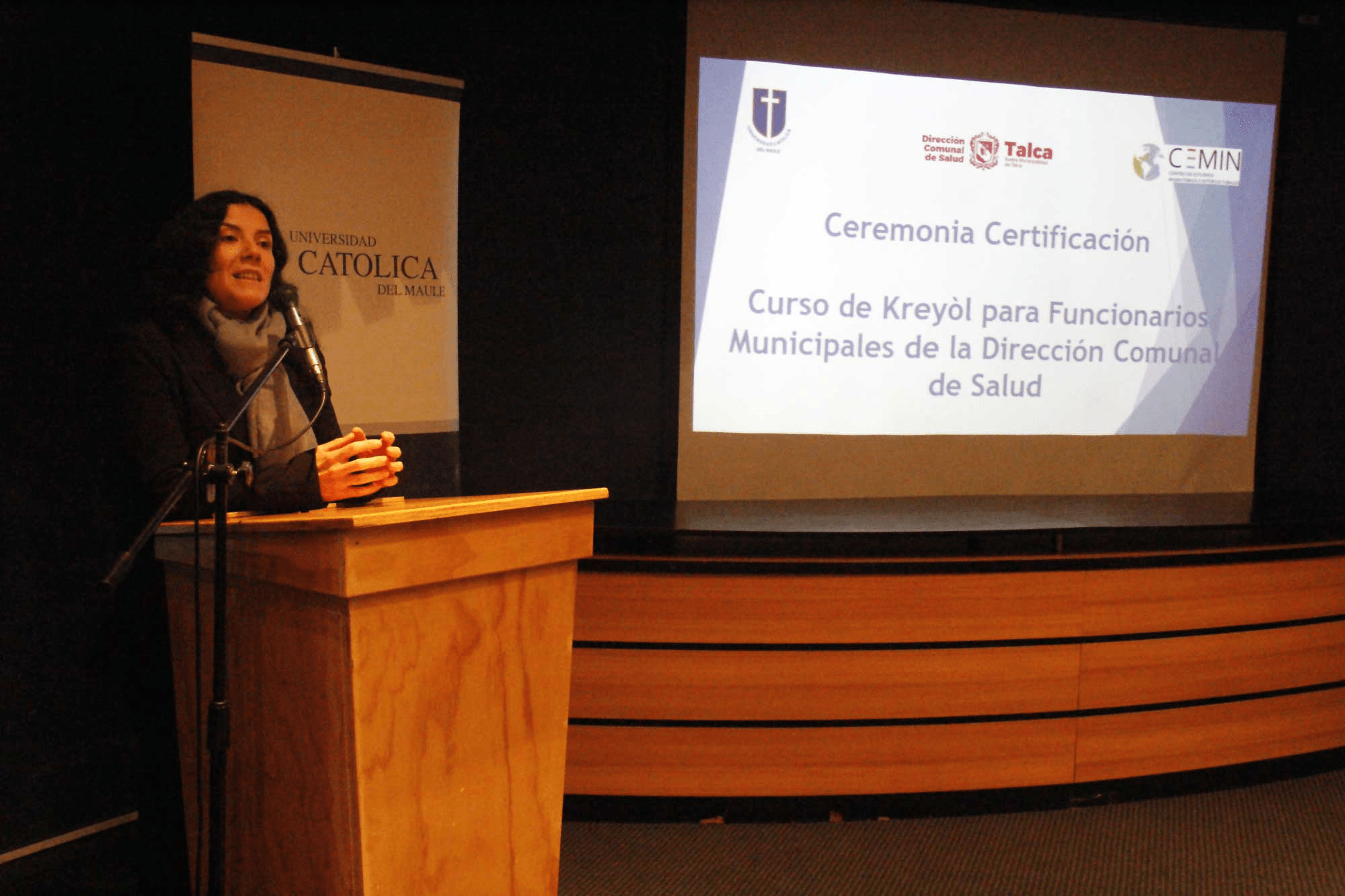 Luego de superar con éxito un total 50 horas lectivas de curso de Kreyol básico, un grupo de 30 funcionarios del Departamento de Salud Comunal de Talca celebraron el martes 12 de junio su certificación realizada por el Centro de Estudios Migratorios e Interculturales de la Universidad Católica del Maule.