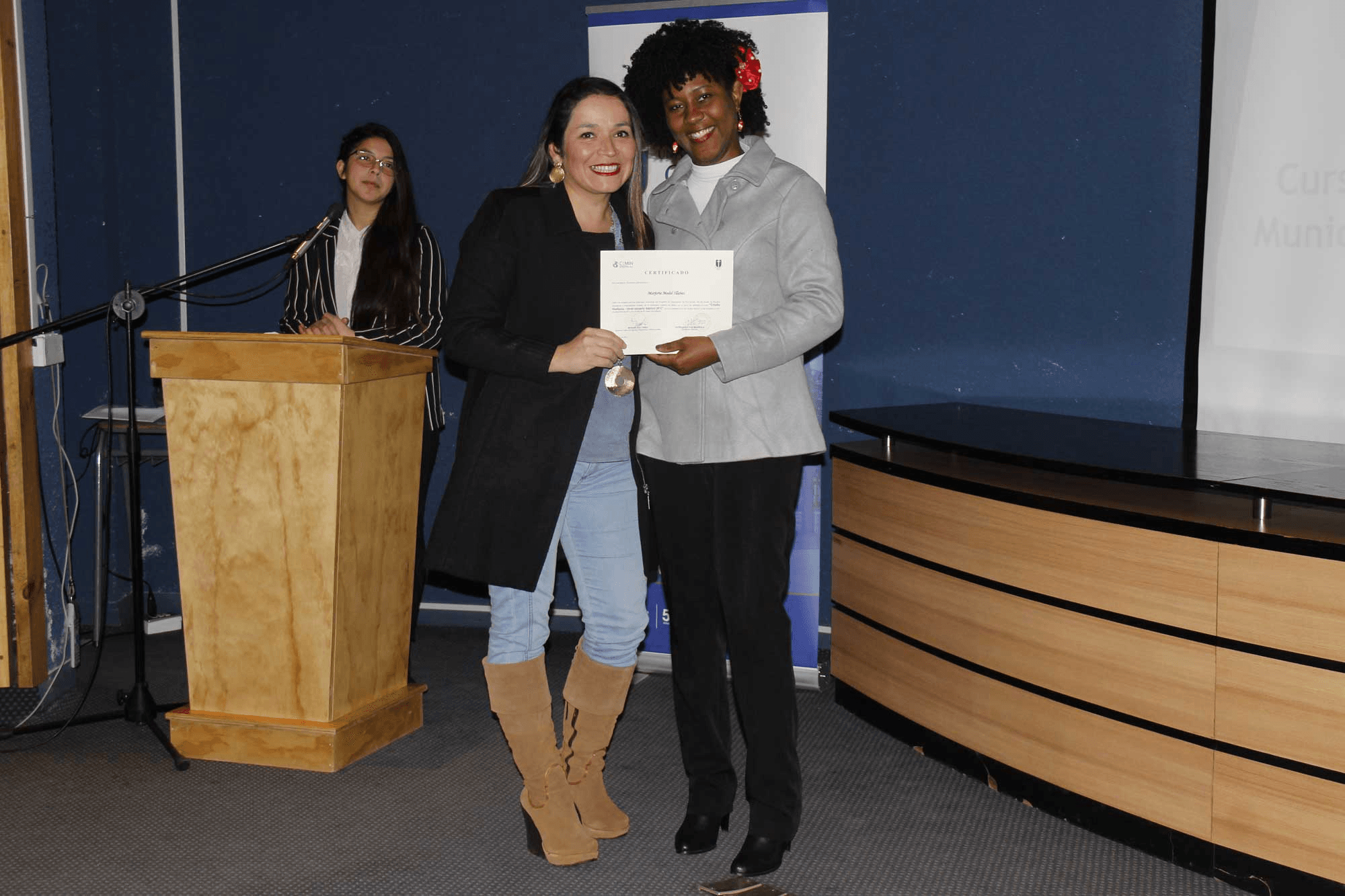 En la actividad de certificación, la Dra. María Teresa Muñoz, vicerrectora de Investigación y Postgrado de la UCM, destacó los avances que Chile posee en cuanto a políticas de salud. “Ustedes han dado un gran paso para atreverse y de manera voluntaria participar del curso. Agradecemos mucho la confianza en nosotros y en el Centro de Estudios, y también por tomar esta iniciativa para entregar un servicio de calidad a la comunidad haitiana de una forma como a cualquier persona, sin distinguir procedencia y al mismo tiempo de manera cercana como lo es en la misma lengua”, indicó.