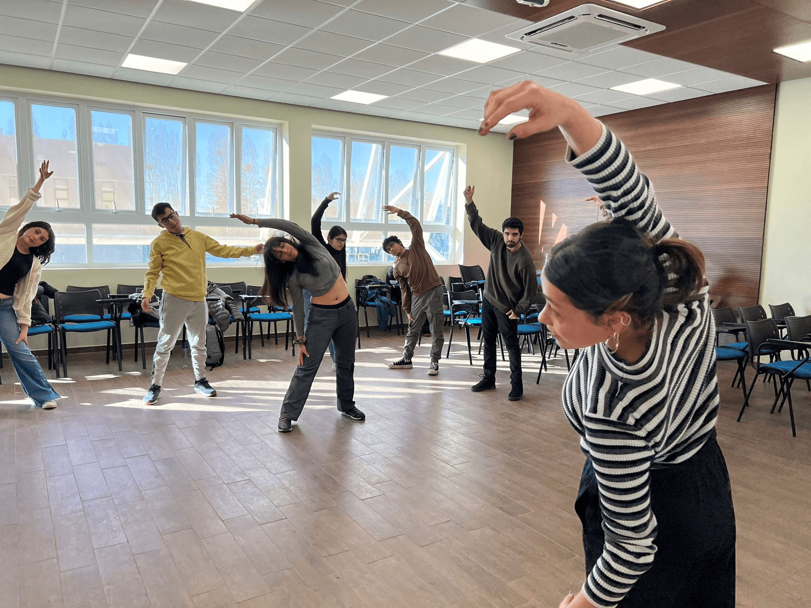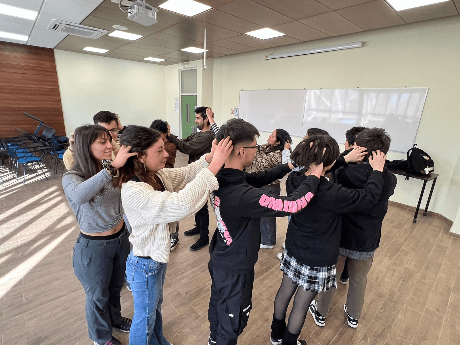 Tutores pares y estudiantes ayudantes aprenden técnicas comunicativas en clases de pedagogía teatral
