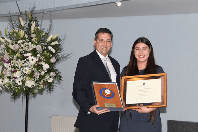 La UCM entregó reconocimiento a la profesora Bárbara Sofía Tapia Veliz, quien alcanzó el promedio de notas más alto de su promoción.