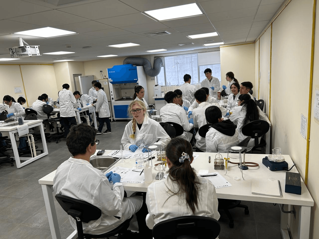 Finalmente, los estudiantes participaron en una prueba experimental preparatoria para la etapa nacional, desarrollada en los laboratorios de la UCM, donde pudieron aplicar conocimientos prácticos y fortalecer su formación científica.
