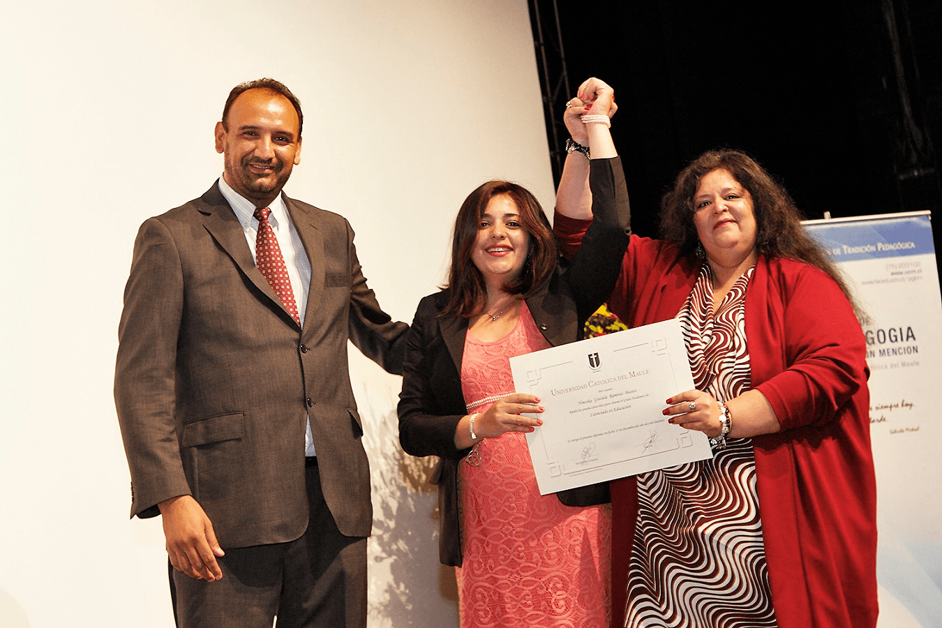 Nuevos profesionales Llegado el momento de oficializar el título, el ambiente cobró gran emotividad, puesto que fueron los propios familiares y amigos cercanos quienes entregaron el diploma a los nuevos representantes de la educación con mención en las áreas de Lenguaje y Comunicación, Matemática, Ciencias Naturales y Ciencias Sociales.