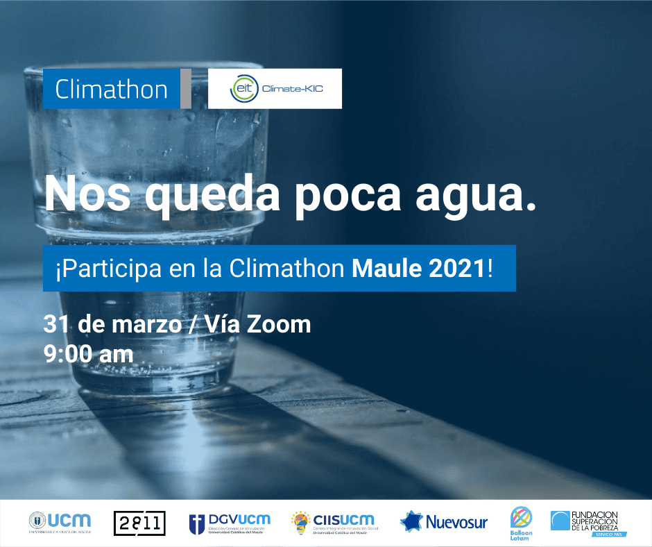 Cabe mencionar que en el 2019 la Climathon se desarrolló junto a estudiantes secundarios en la ciudad de Linares, y hoy la Climathon Maule 2021 abre su convocatoria a todo el territorio regional con el patrocinio del Centro Integral de Innovación Social (CIIS) de la UCM, Aguas Nuevosur, Balloon Latam, la Fundación para la Superación de la Pobreza y Fundación Amulet.