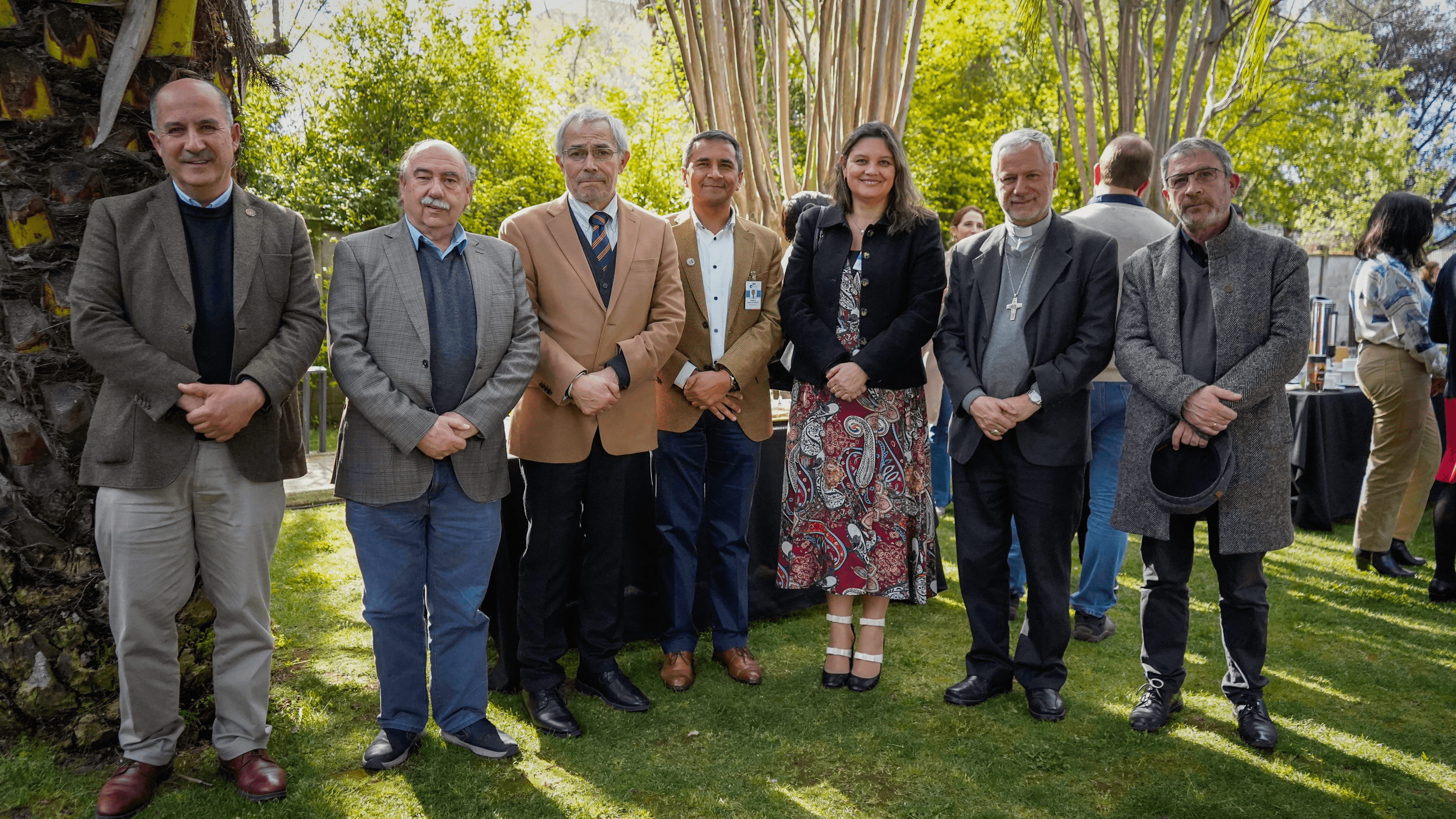 Dr. Enrique Muñoz, director UCM Sede Curicó; Dr. Raúl Silva, director Centro Oncológico UCM; Dr. Claudio Rojas, rector UCM; Pablo Gacitúa director (s) Hospital Regional de Talca; Catalina Soto, jefa Unidad Docente Asistencial HRT; Mons. Galo Fernández; Obispo de Talca; Dr. Víctor San Martín, director de Planificación y Desarrollo Universitario UCM.