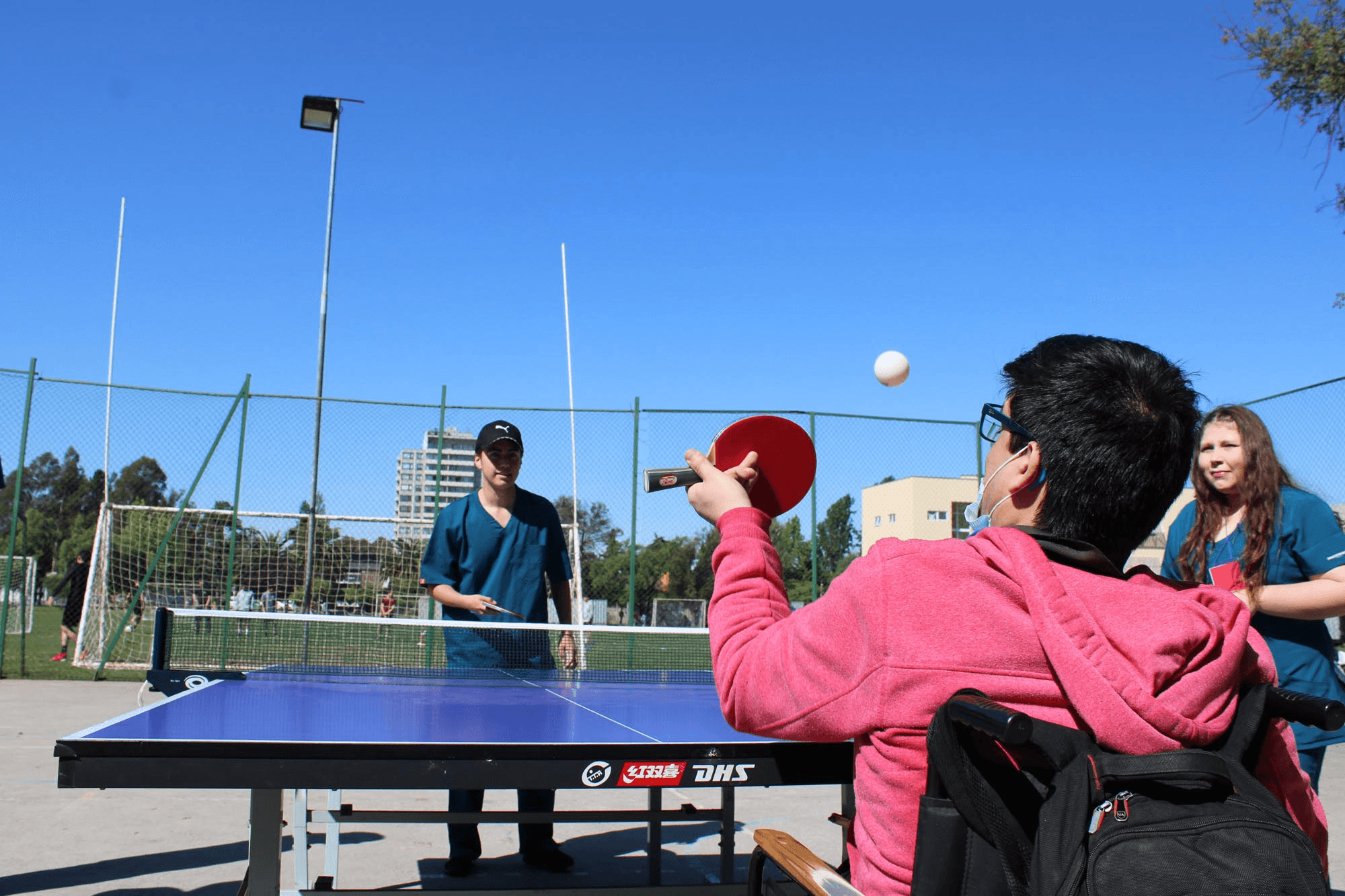 Rebolledo añadió que “la participación de los estudiantes es muy importante, ellos generan toda la coordinaci ón, la energía, el entusiasmo y la experiencia de vivir de cerca con los pacientes, porque quienes participan están en proceso de rehabilitación y, a través del deporte, mejoran su funcionalidad”.