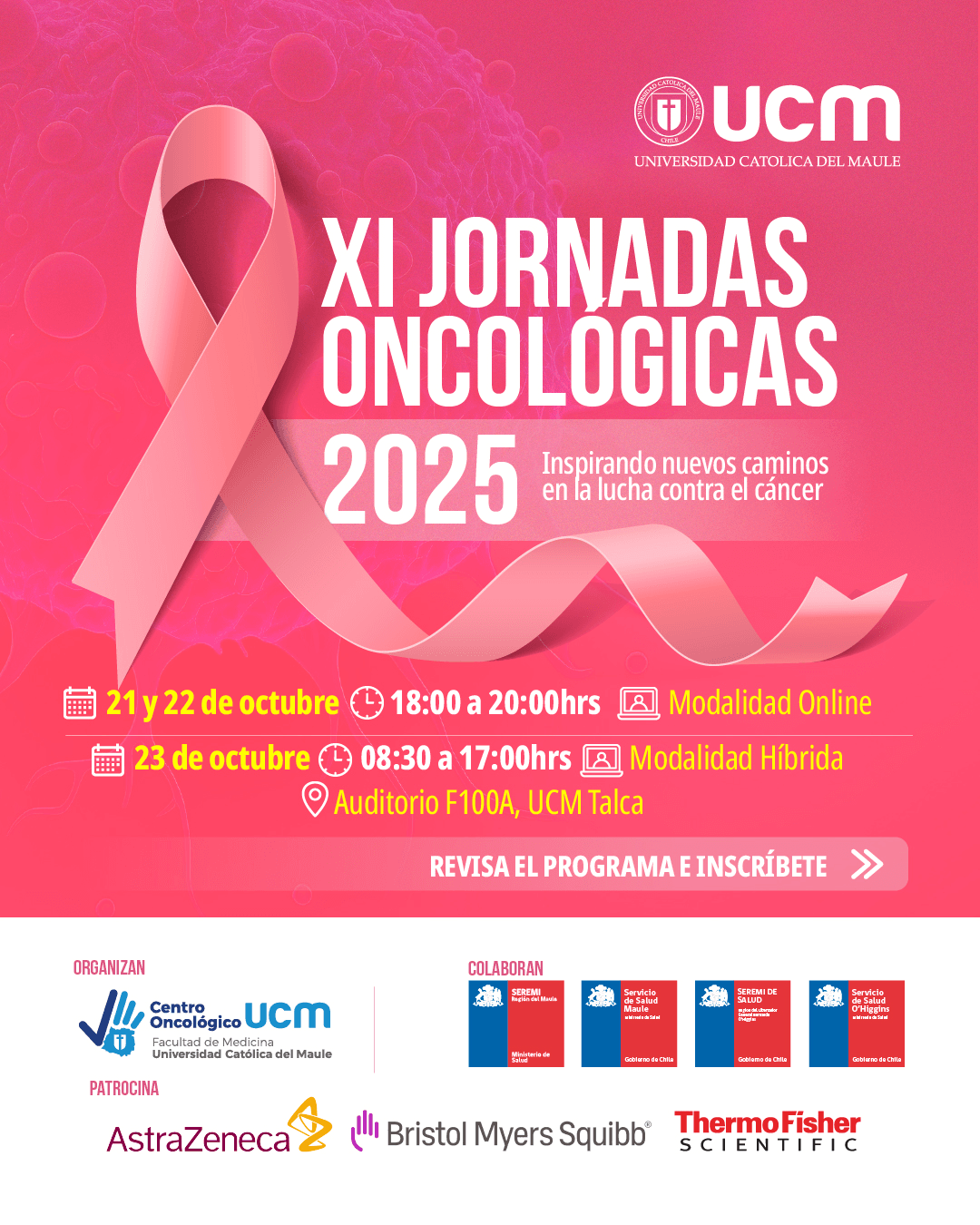 UCM a través de su Centro Oncológico impulsa la formación oncológica con mirada global y compromiso regional. 21, 22 y 23 de octubre con sesiones online y una jornada presencial en el Campus San Miguel de Talca.