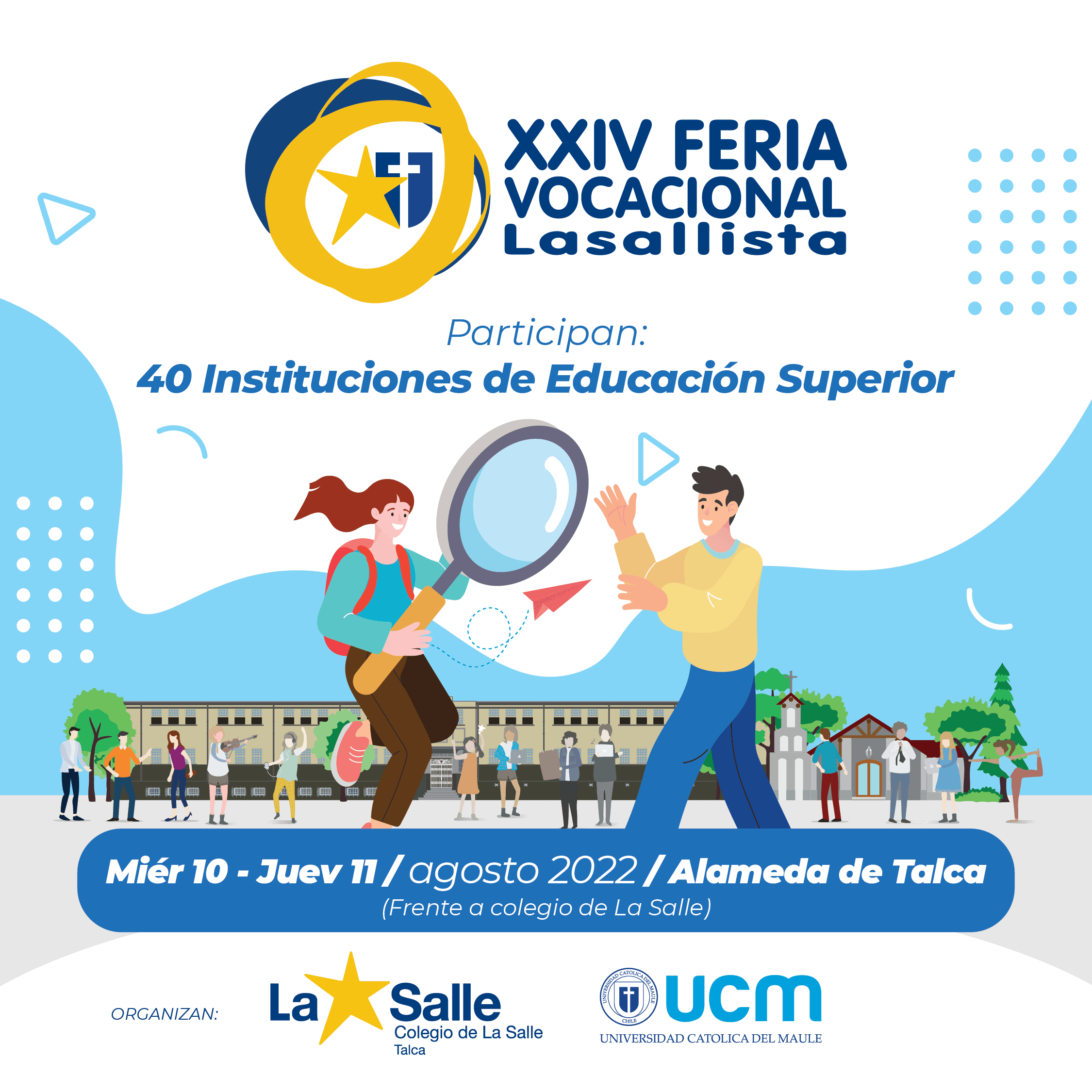 Es por eso, que el Colegio de La Salle, en colaboración con la Universidad Católica del Maule, llevarán a cabo la Feria Vocacional Lasallista 2022, la cual tiene fecha para el miércoles 10 y jueves 11 de agosto, y estará ubicada en la alameda de Talca, entre uno poniente y uno oriente, frente al establecimiento.